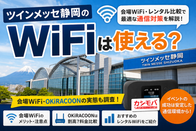 会場公式サービスの申込みまで進めるほどではないものの、展示ホール内で安定した通信を確保したい場合や、受付・決済など止めたくない用途がある場合には、WiFiレンタルを用意しておくと運営しやすくなります。バックアップ回線として追加する使い方もおすすめです。