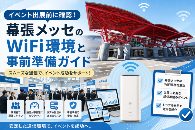 東京ビッグサイトでは一部エリアでフリーWiFiが提供されていますが、展示ホール内では利用できないことも多く、また来場者のアクセス集中により通信が不安定になることもあります。
