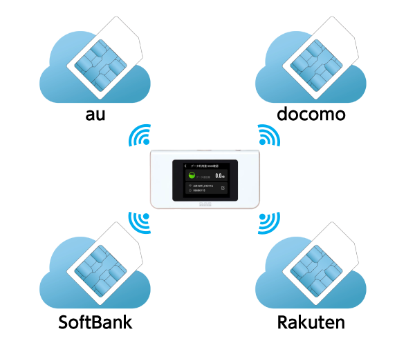 主要キャリア(docomo、au、Softbank、楽天)全ての利用エリアをカバーしているモバイルWiFiルーター。